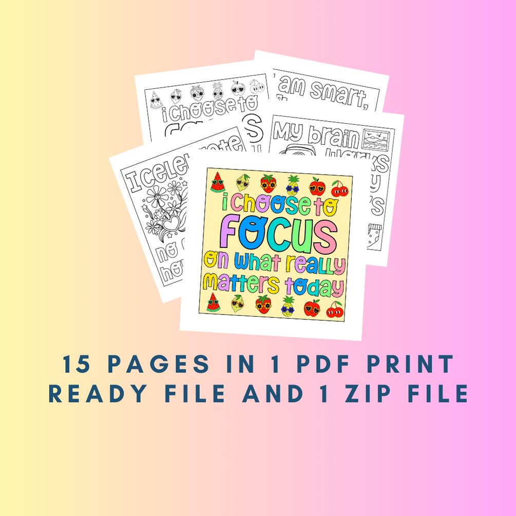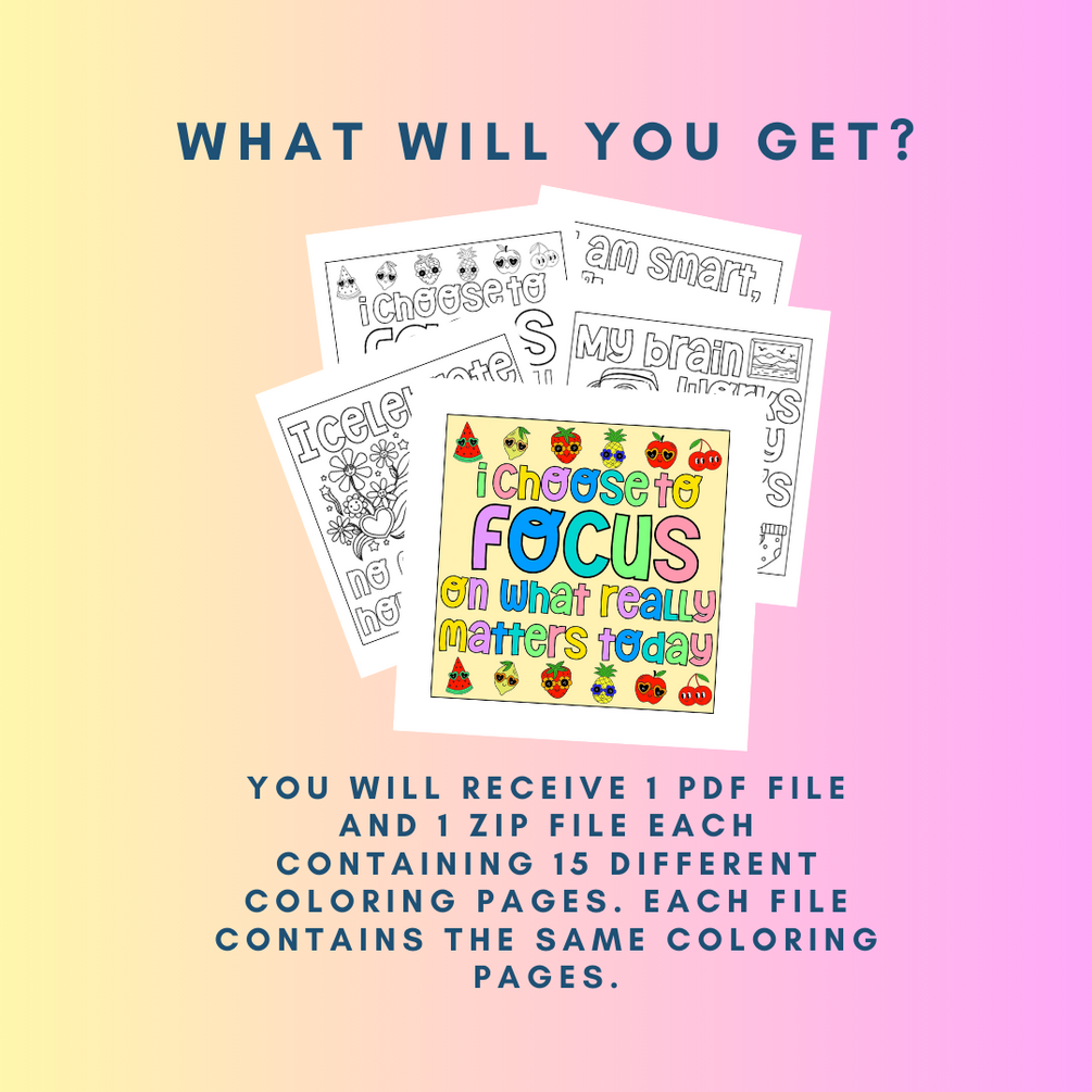 ✔ 1 PDF file with 15 pages of unique ADHD affirmation designs (for digital coloring)