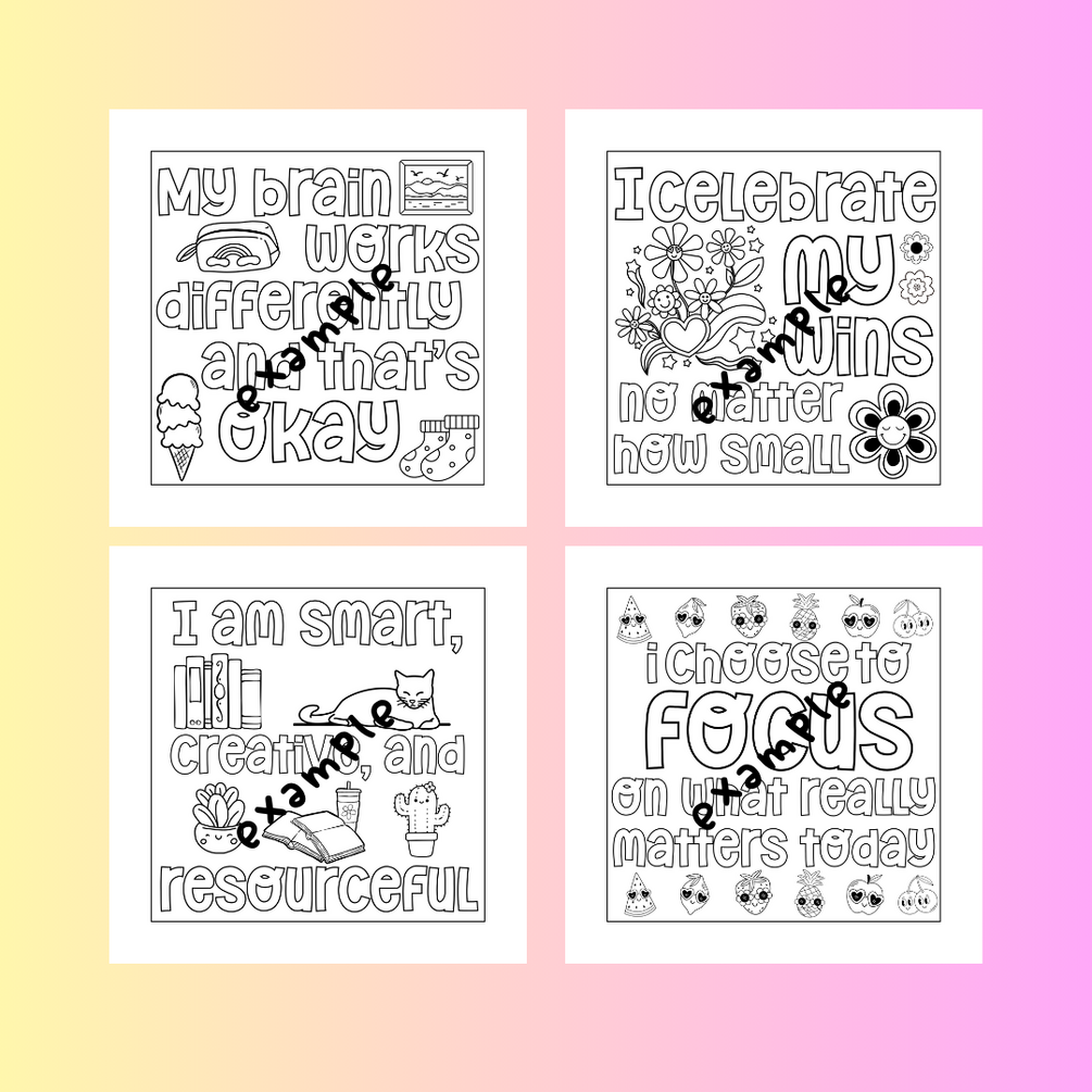 ADHD Coloring Pages Printable, Affirmation Coloring for Adults, Self-Love and Mindfulness Gift for Her, Affirmations for Women, For Kids